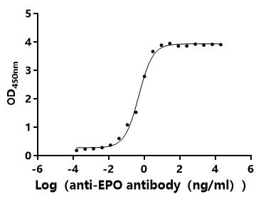 Measured by its binding ability in a functional ELISA.Immobilized Human EPO at 2 μg/mL can bind Anti-EPO recombinant antibody (CSB-RA007743MA1HU).The EC50 is 0.4354-0.5532 ng/mL.