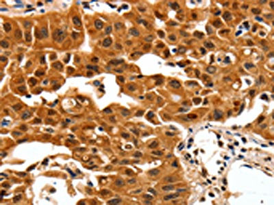 The image on the left is immunohistochemistry of paraffin-embedded Human lung cancer tissue using CSB-PA179192(YWHAB Antibody) at dilution 1/30, on the right is treated with synthetic peptide. (Original magnification: ×200)