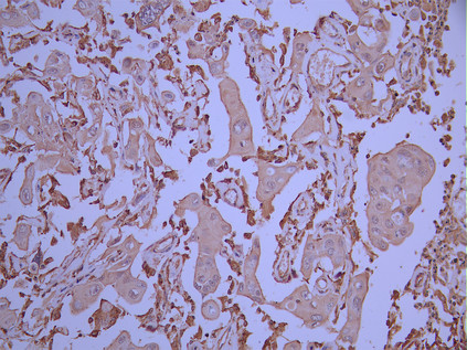 IHC image of CSB-RA216952A0HU diluted at 1:100 and staining in paraffin-embedded human cervical cancer performed on a Leica BondTM system. After dewaxing and hydration, antigen retrieval was mediated by high pressure in a citrate buffer (pH 6.0). Section was blocked with 10% normal goat serum 30min at RT. Then primary antibody (1% BSA) was incubated at 4°C overnight. The primary is detected by a Goat anti-rabbit polymer IgG labeled by HRP and visualized using 0.05% DAB.