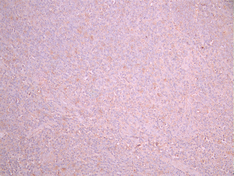 IHC image of CSB-RA011629MA3HU diluted at 1:50 and staining in paraffin-embedded human tonsil tissue performed on a Leica BondTM system. After dewaxing and hydration, antigen retrieval was mediated by high pressure in a citrate buffer (pH 6.0). Section was blocked with 10% normal goat serum 30min at RT. Then primary antibody (1% BSA) was incubated at 4°C overnight. The primary is detected by a Goat anti-mouse polymer IgG labeled by HRP and visualized using 0.05% DAB.