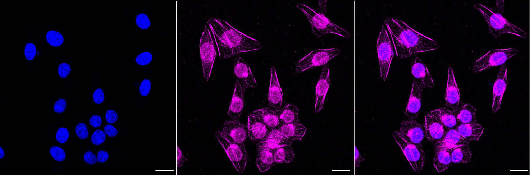 Immunocytochemical staining of HepG2 cells with Rab9 antibody. Nuclei were stained blue with DAPI; Rab9 was stained magenta with Alexa Fluor? 647. Images were taken using Leica stellaris 5. Protein abundance based on laser Intensity and smart gain: Medium. Scale bar, 20 μm.