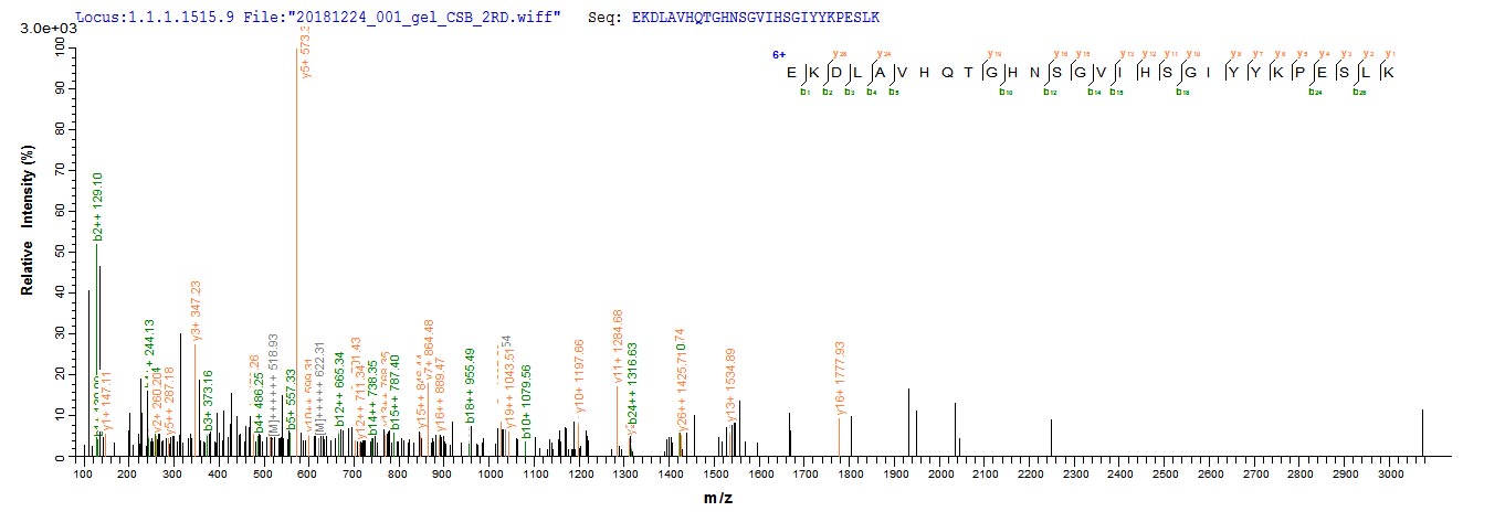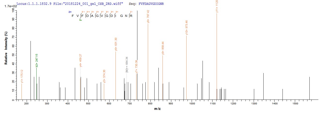 Based on the SEQUEST from database of E.coli host and target protein, the LC-MS/MS Analysis result of CSB-EP864008HU could indicate that this peptide derived from E.coli-expressed Homo sapiens (Human) L2HGDH.