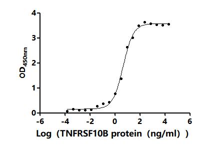 Measured by its binding ability in a functional ELISA. Immobilized Human TNFSF10 at 4 μg/ml can bind Human TNFRSF10B (CSB-MP023965HU1d9). The EC50 is 3.897-5.215 ng/mL. Biological Activity Assay