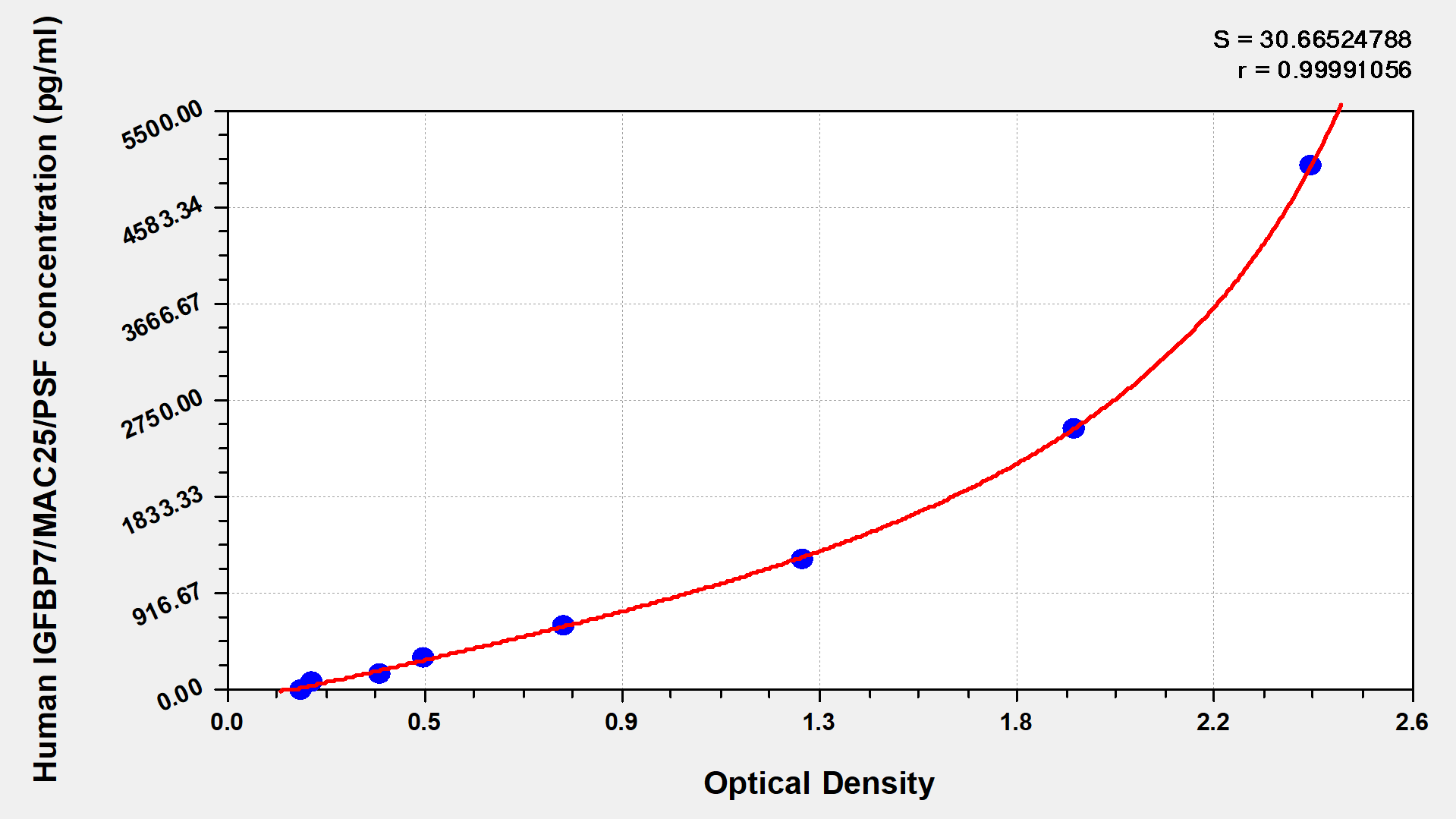 通過(guò)線性范圍來(lái)計(jì)算出實(shí)際的檢測(cè)樣本值,定量試劑盒標(biāo)準(zhǔn)曲線的相關(guān)系數(shù)R大于0.99。以CSB-E07270h(人脂聯(lián)素(ADP)ELISA Kit)為例的標(biāo)準(zhǔn)曲線。